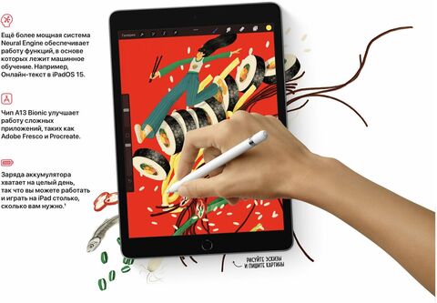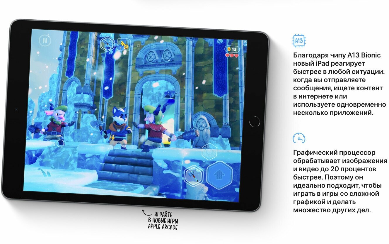 Для работы. Для отдыха. Для творчества. Это iPad - универсальный и доступный планшет, прекрасно проявляющий себя во всех сферах: от создания музыки и видео до общения с друзьями и близкими. С iPad всегда все очень просто. Мощный процессор С A13 Bionic все приложения теперь работают быстрее и плавнее