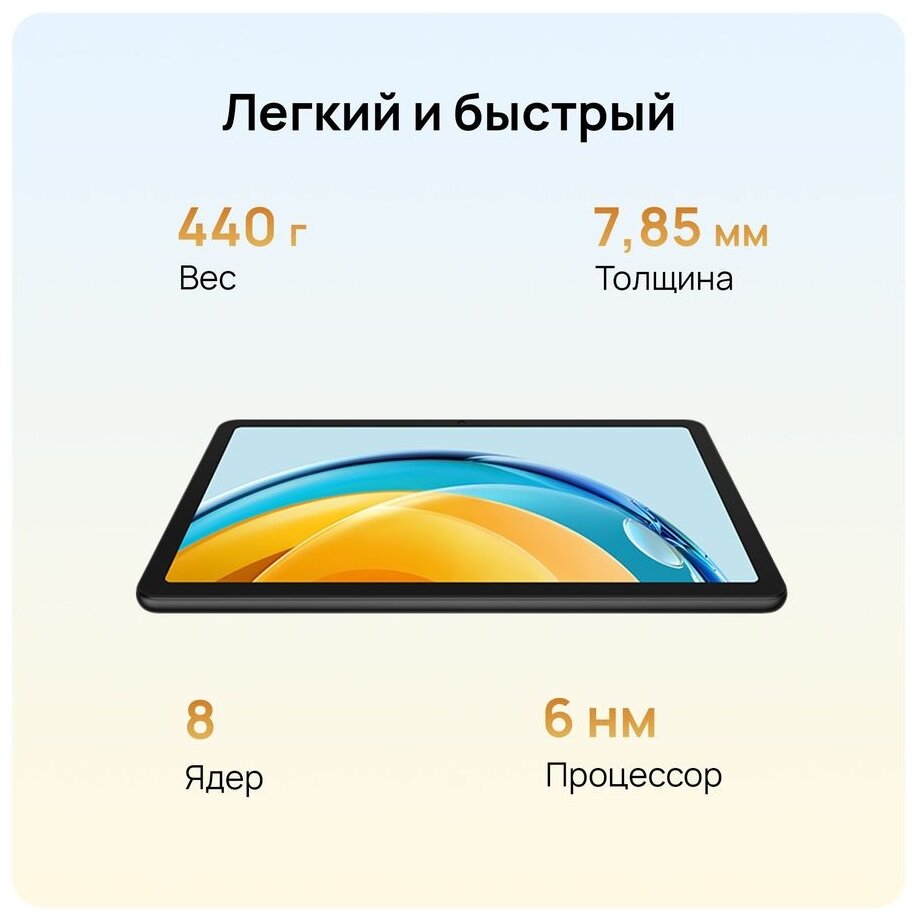 Планшет Huawei MatePad SE 10.4" 3/32Gb WiFi Black 53013NAE HUAWEI MatePad SE оснащен потрясающим безрамочным 2K-экраном3 HUAWEI FullView 10,4 дюйма с полезной площадью 83% и эффектом полного погружения. Благодаря симметричной звуковой системе, состоящей из двух динамиков, с уникальной настройкой зву