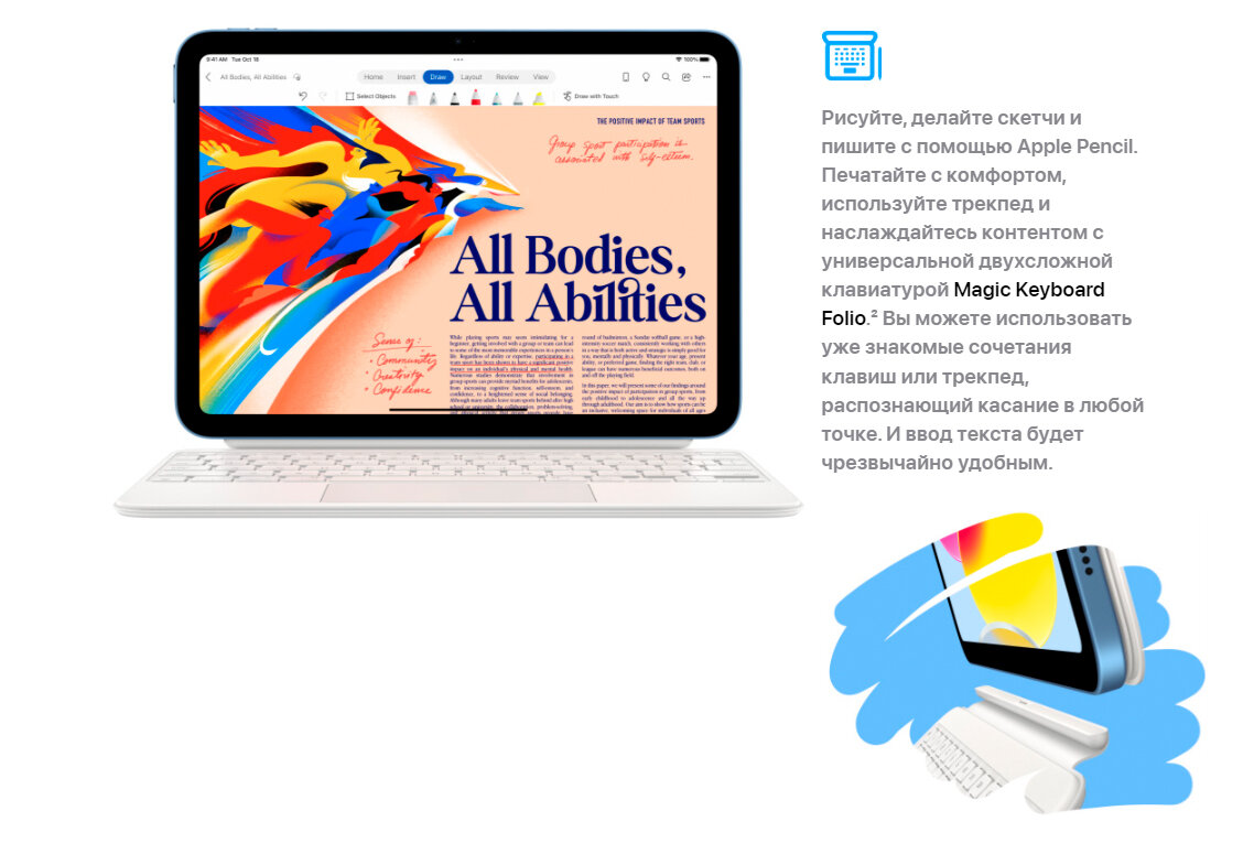 Совершенно новый iPad красочно переосмыслен, чтобы сделать его более функциональным, интуитивно понятным и еще более увлекательным. Благодаря новому...
