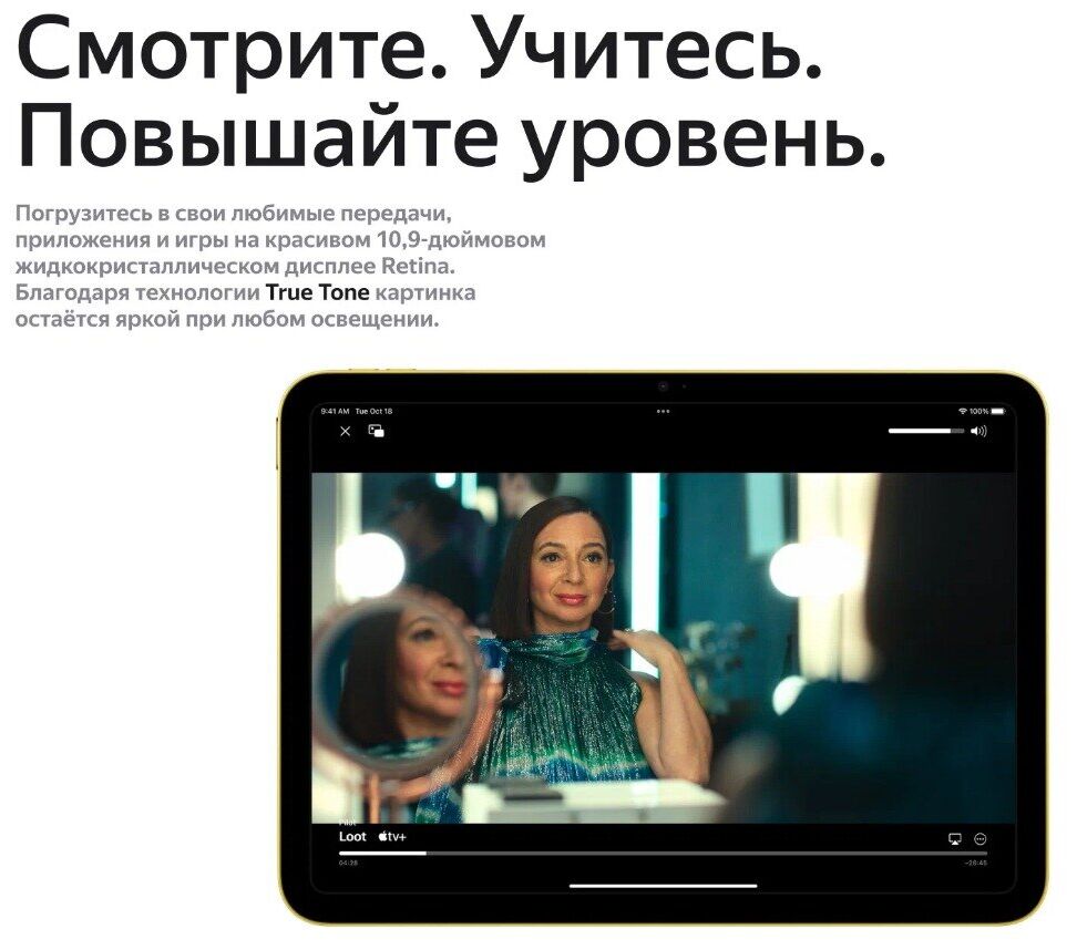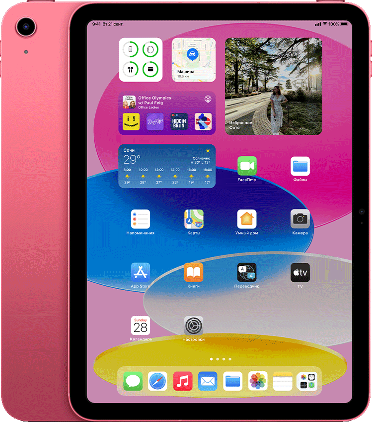 Совершенно новый iPad красочно переосмыслен, чтобы сделать его более функциональным, интуитивно понятным и еще более увлекательным. Благодаря новому полноэкранному дизайну, 10,9‑дюймовому дисплею Liquid Retina и четырем великолепным цветам iPad предоставляет мощный способ делать что-то, творить и ос