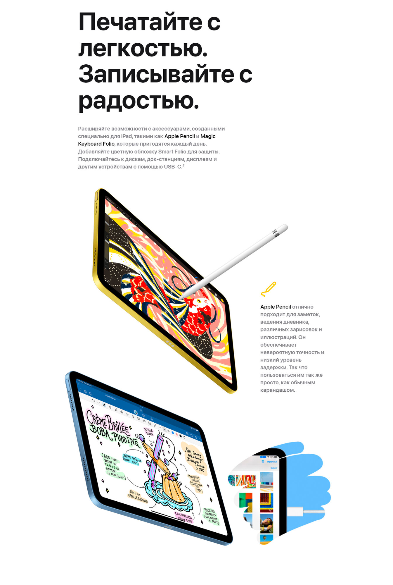 Совершенно новый iPad красочно переосмыслен, чтобы сделать его более функциональным, интуитивно понятным и еще более увлекательным. Благодаря новому...