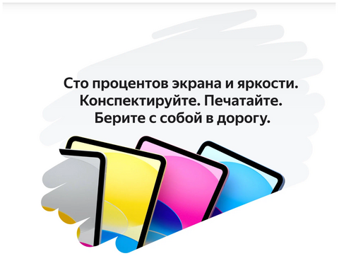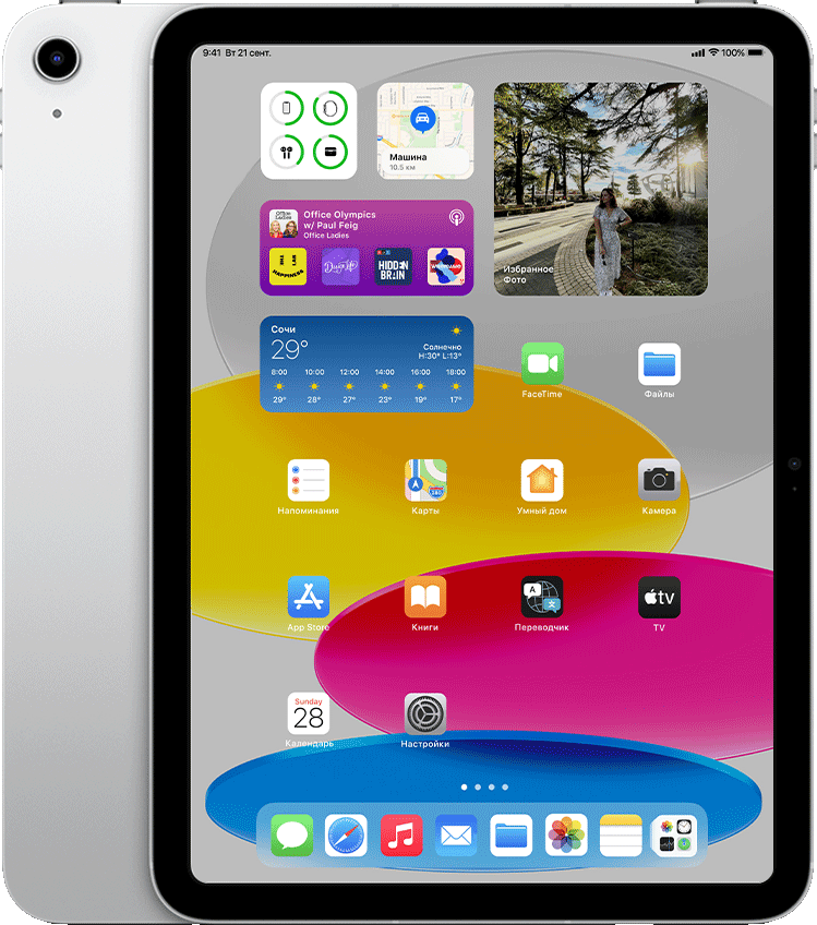 Совершенно новый iPad красочно переосмыслен, чтобы сделать его более функциональным, интуитивно понятным и еще более увлекательным. Благодаря новому полноэкранному дизайну, 10,9‑дюймовому дисплею Liquid Retina и четырем великолепным цветам iPad предоставляет мощный способ делать что-то, творить и ос