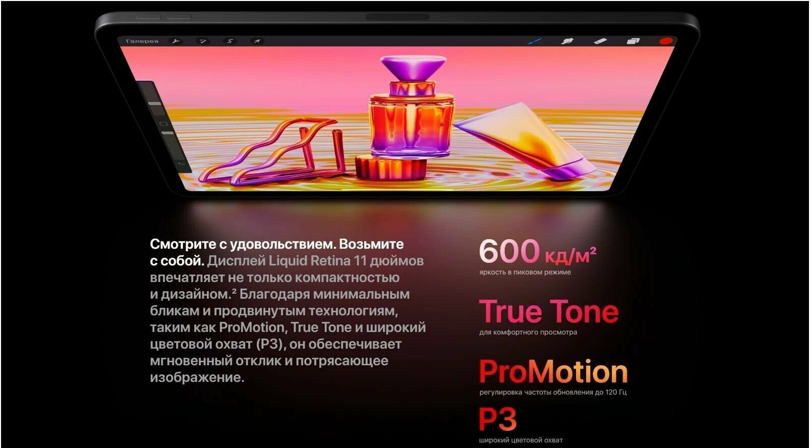 Планшет Apple iPad Pro 11 2022 — модель с рубленными гранями и закругленными углами, выполнена в корпусе из алюминия. 11-дюймовый экран типа Liquid Retina...