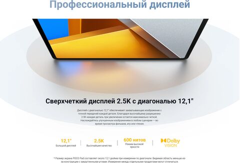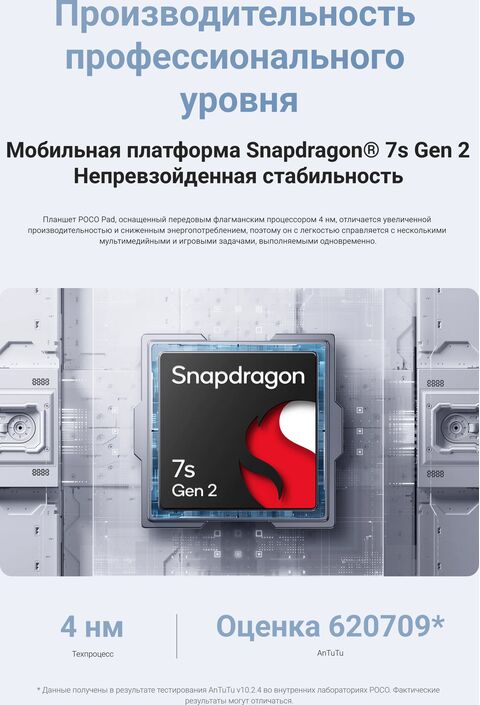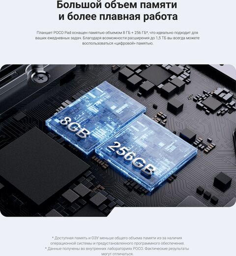 Планшет Xiaomi Poco Pad 8/256Gb Global, Blue – мощный и стильный гаджет, который сочетает в себе высокую производительность и привлекательный дизайн. Мощный процессор и быстрая работа: планшет оснащен мощным процессором Qualcomm Snapdragon 870 с 8 ядрами и 8 ГБ оперативной памяти, что обеспечивает б