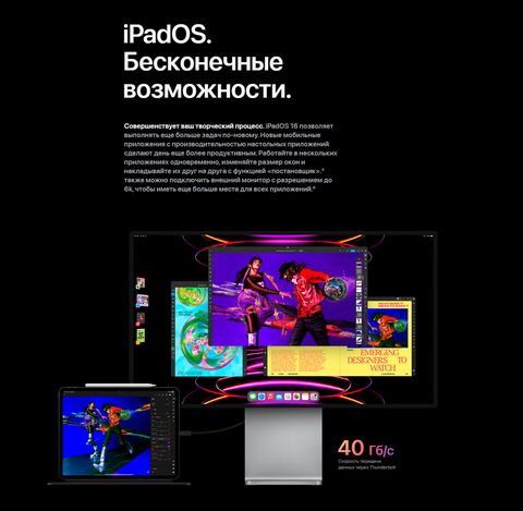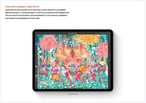 Планшет Apple iPad Pro 12.9 2022. 12,9-дюймовый экран типа Liquid Retina обладает разрешением 2048х2732 пикселей, что дает возможность тщательно рассмотреть все детали, которые появляются в кадре. Предустановленная ОС iPadOS делает устройство простым в управлении. Стабильное соединение с Сетью обесп