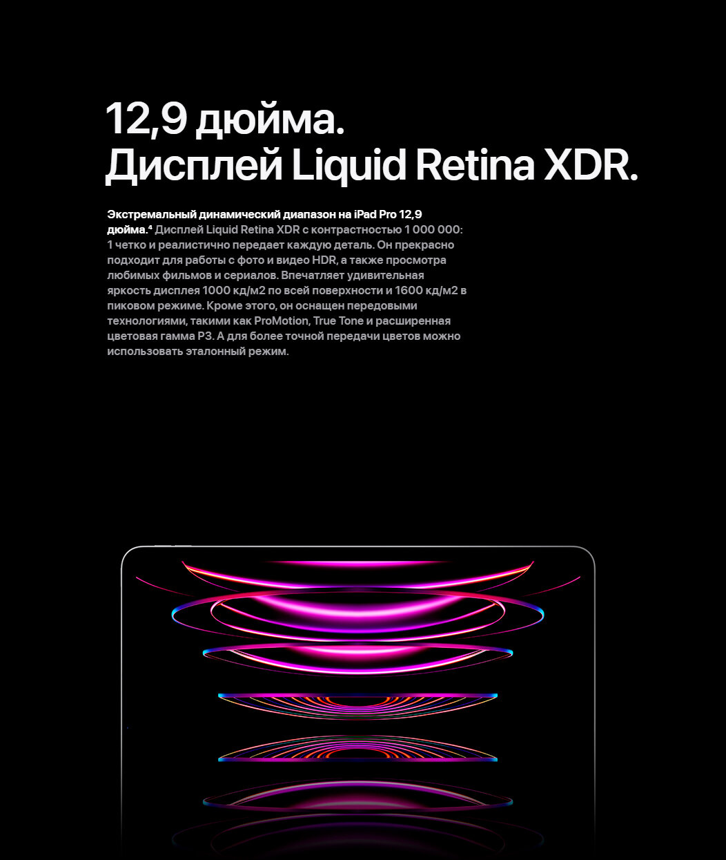 Планшет Apple iPad Pro 12.9 2022. 12,9-дюймовый экран типа Liquid Retina обладает разрешением 2048х2732 пикселей, что дает возможность тщательно рассмотреть...