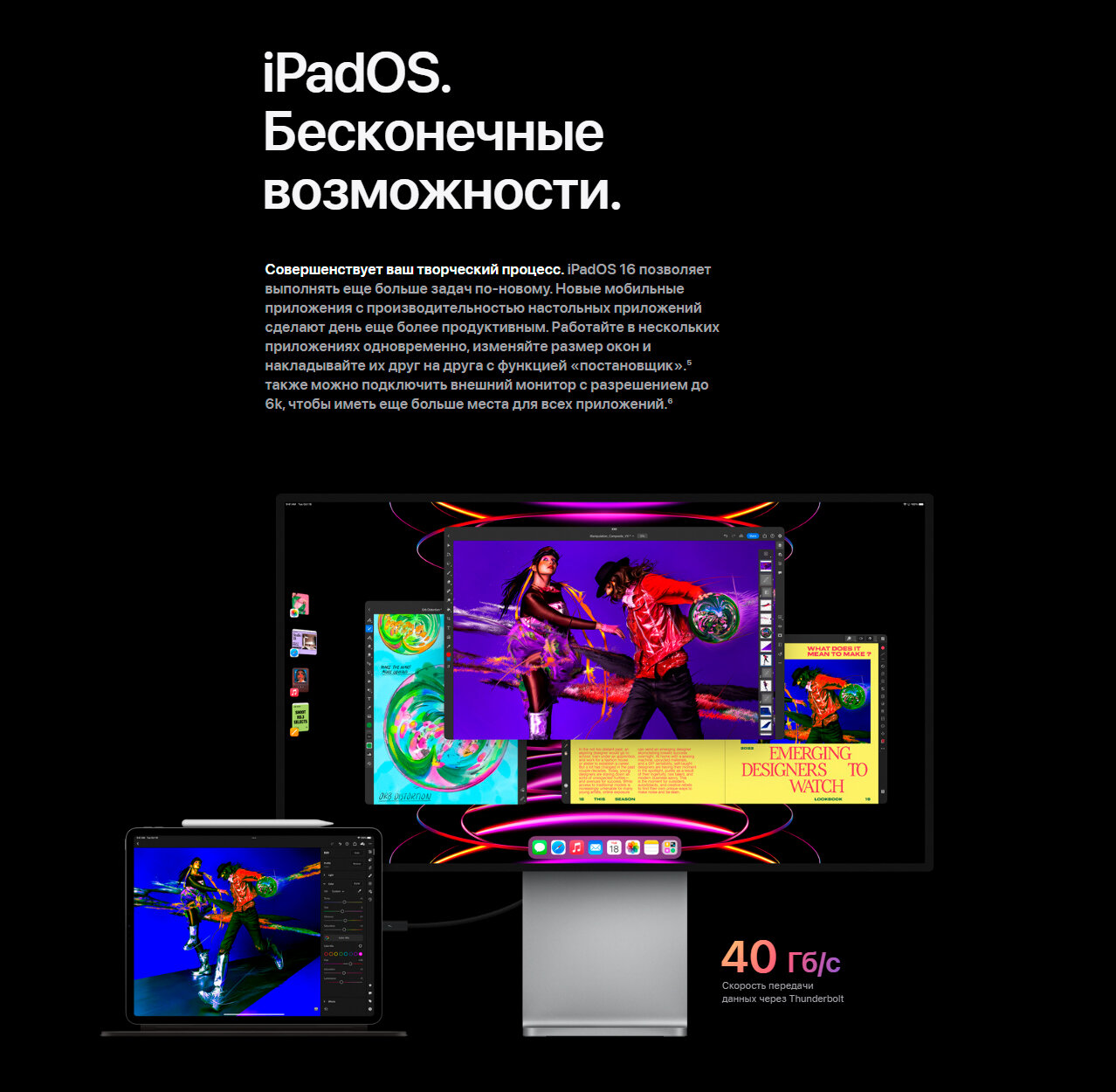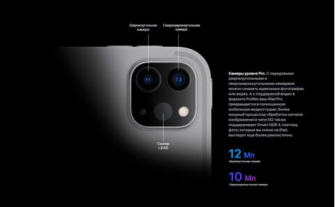 Планшет Apple iPad Pro 12.9 2022. 12,9-дюймовый экран типа Liquid Retina обладает разрешением 2048х2732 пикселей, что дает возможность тщательно рассмотреть все детали, которые появляются в кадре. Предустановленная ОС iPadOS делает устройство простым в управлении. Стабильное соединение с Сетью обесп
