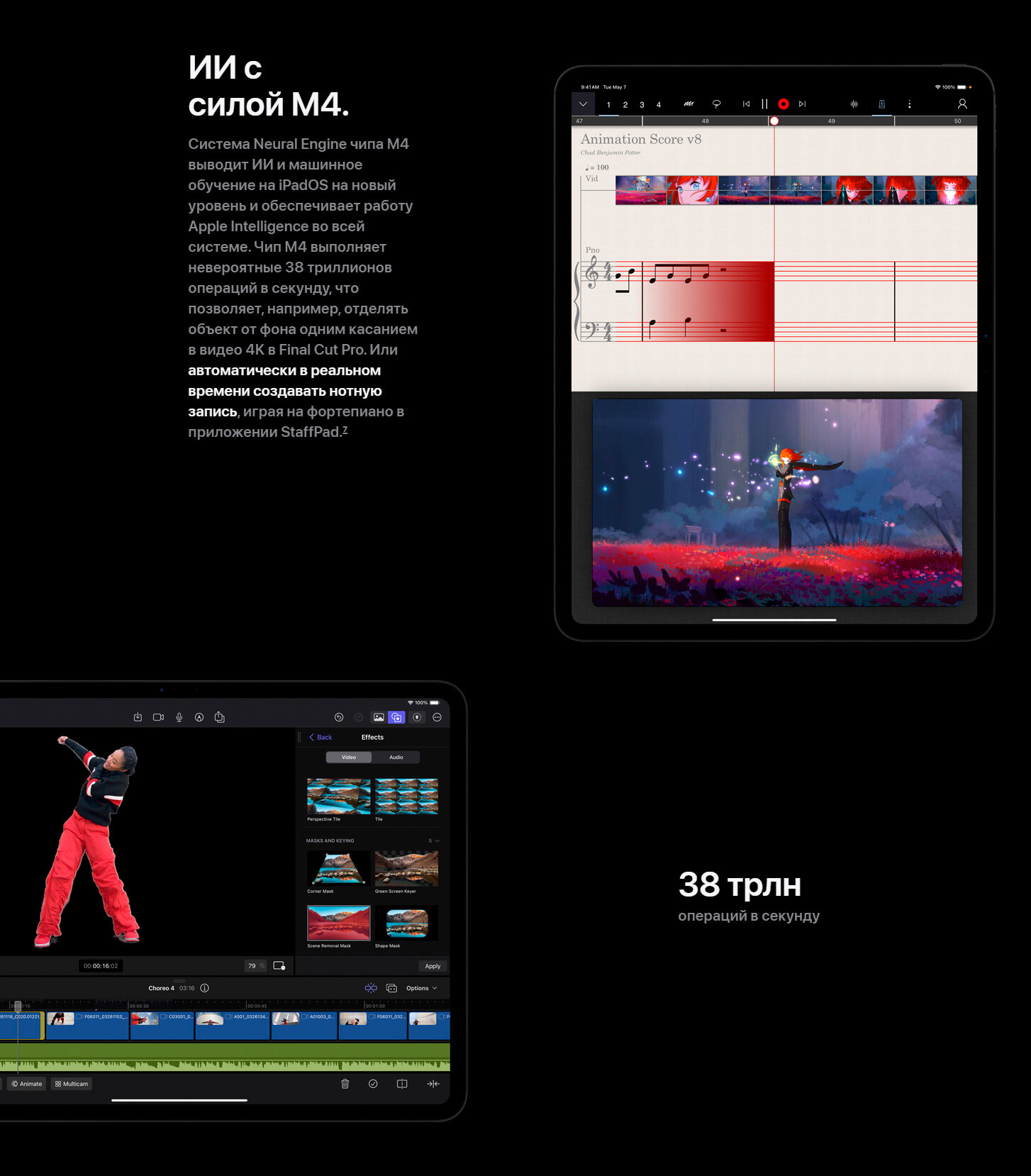 год начала продаж: 2024, диагональ: 12.9" и выше, диагональ экрана: 13 ", частота обновления: 120 Гц, тип разъема для зарядки: USB Type-C, количество основных камер: 1, особенности: акселерометр, барометр, встроенный микрофон, гироскоп, датчик освещенности, сканер LiDAR