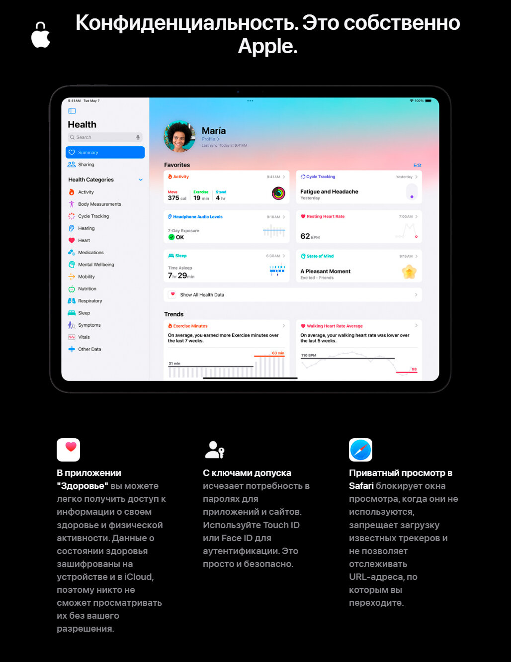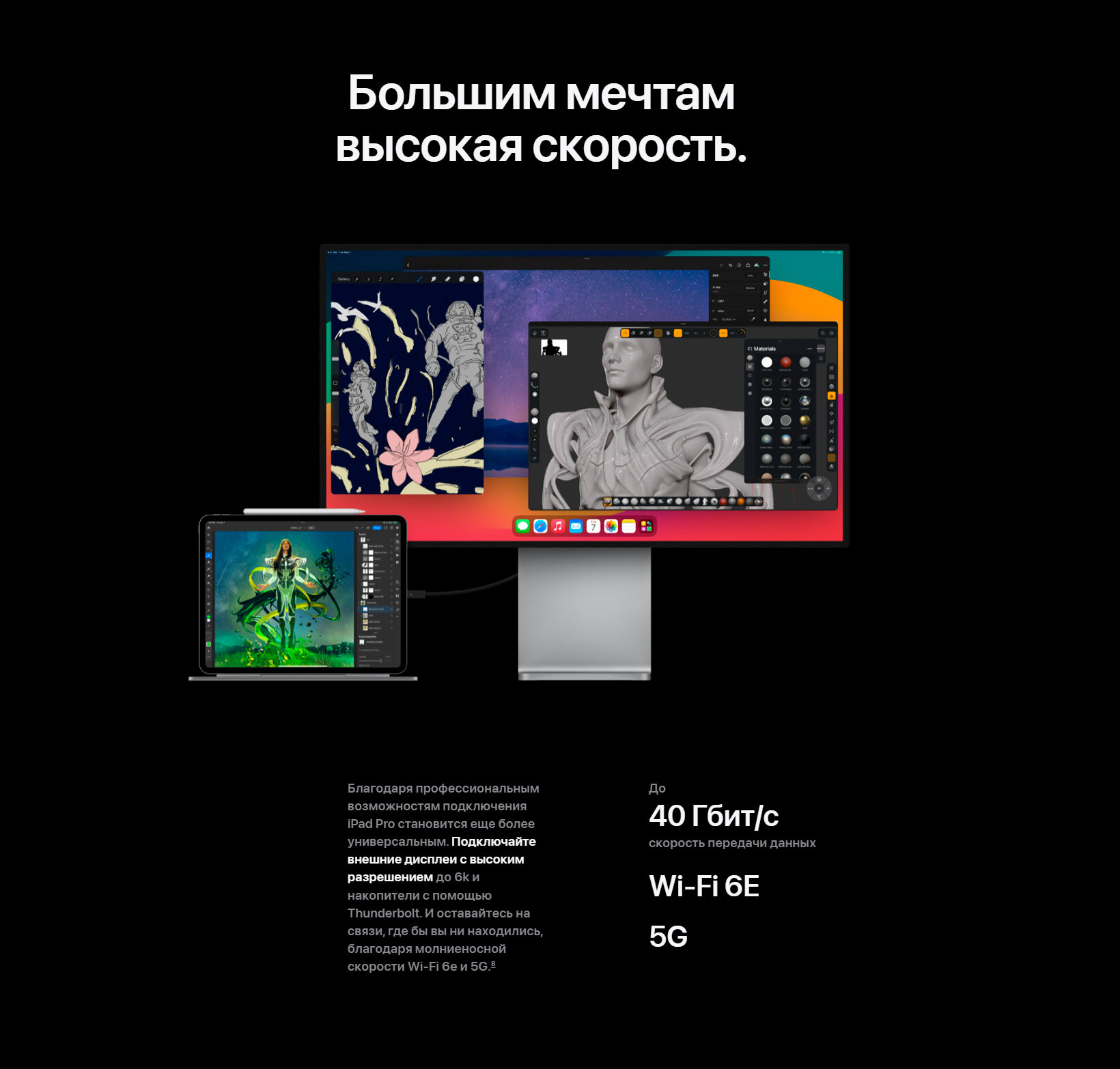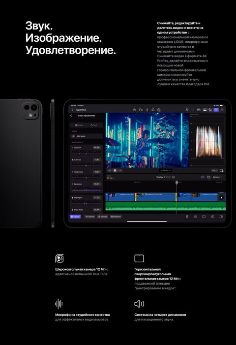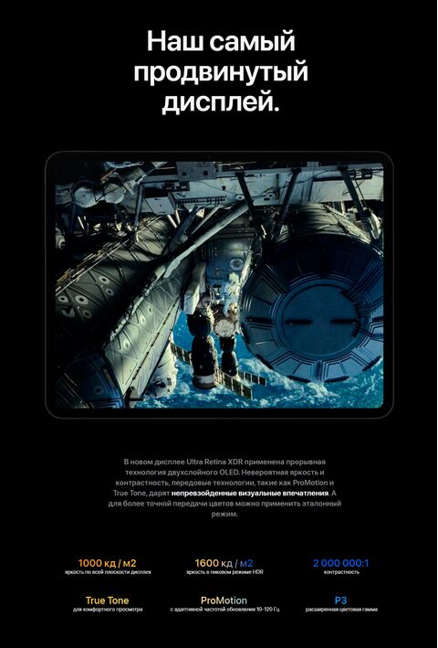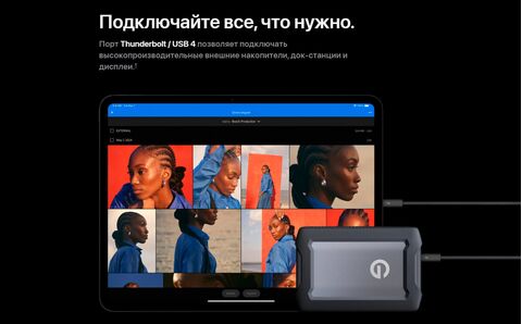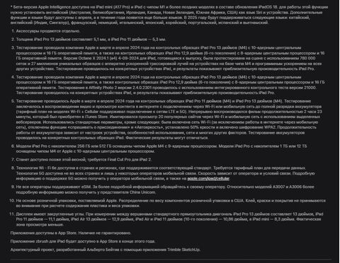год начала продаж: 2024, диагональ: 12.9" и выше, диагональ экрана: 13 ", частота обновления: 120 Гц, тип разъема для зарядки: USB Type-C, количество основных камер: 1, особенности: акселерометр, барометр, встроенный микрофон, гироскоп, датчик освещенности, сканер LiDAR