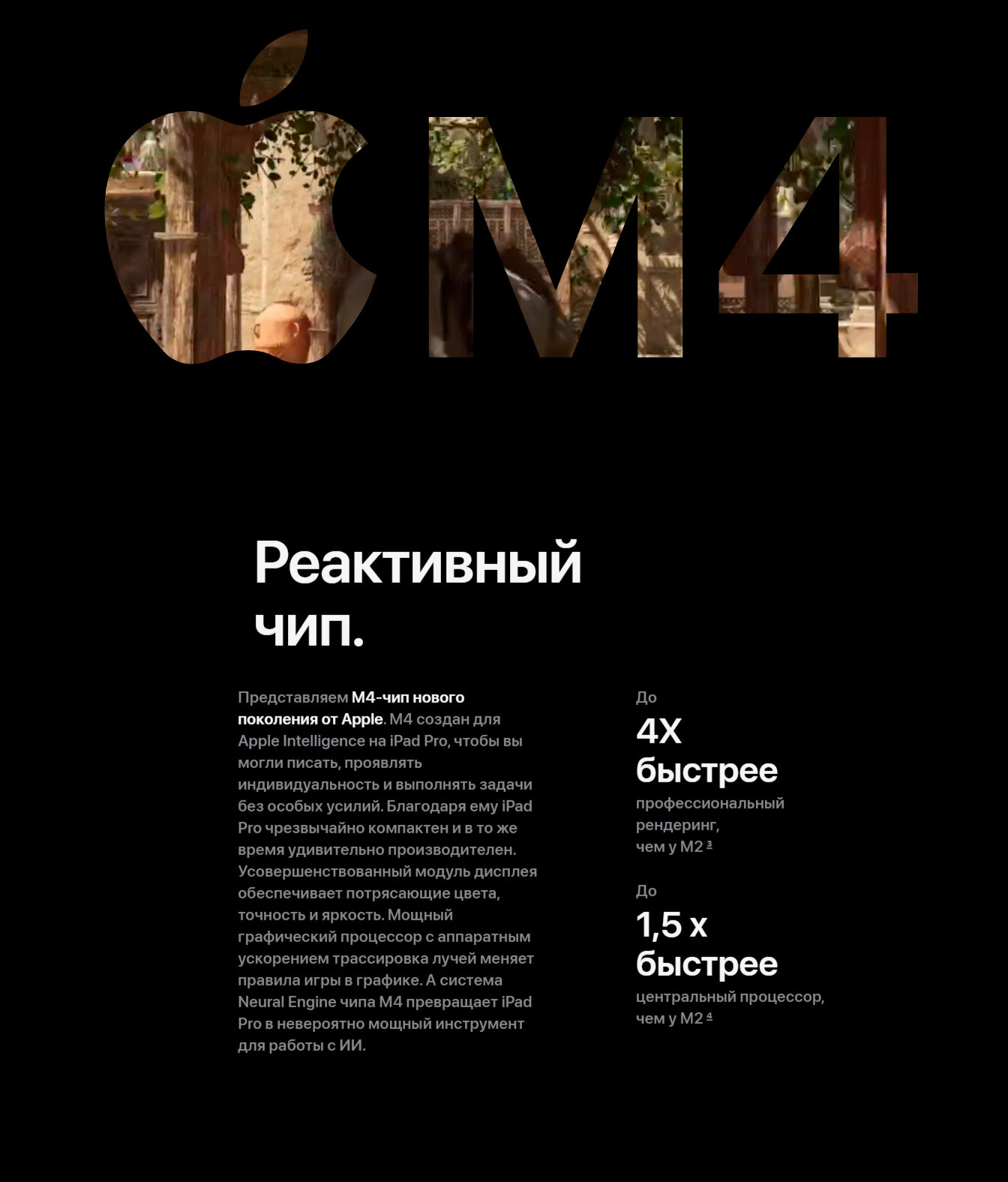 год начала продаж: 2024, диагональ: 12.9" и выше, диагональ экрана: 13 ", частота обновления: 120 Гц, тип разъема для зарядки: USB Type-C, количество основных камер: 1, особенности: акселерометр, барометр, встроенный микрофон, гироскоп, датчик освещенности, сканер LiDAR