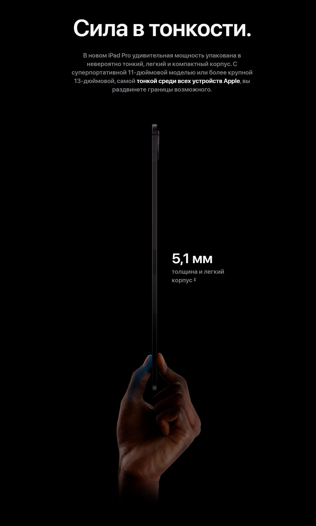 год начала продаж: 2024, диагональ: 12.9" и выше, диагональ экрана: 13 ", частота обновления: 120 Гц, тип разъема для зарядки: USB Type-C, количество основных камер: 1, особенности: акселерометр, барометр, встроенный микрофон, гироскоп, датчик освещенности, сканер LiDAR