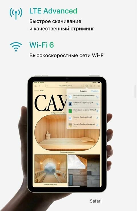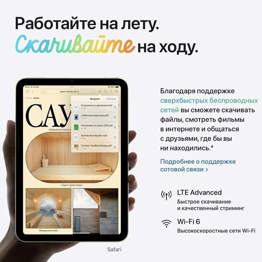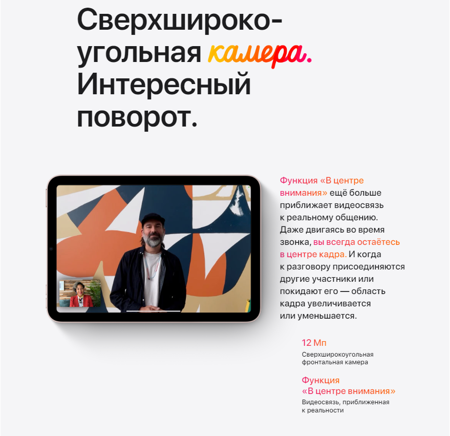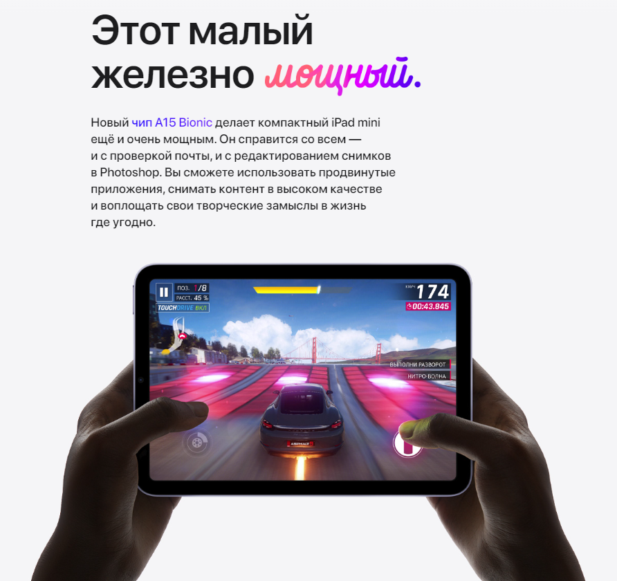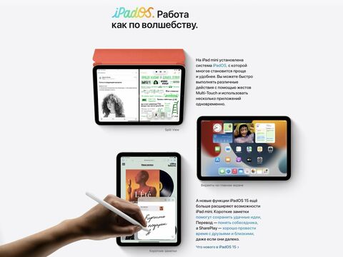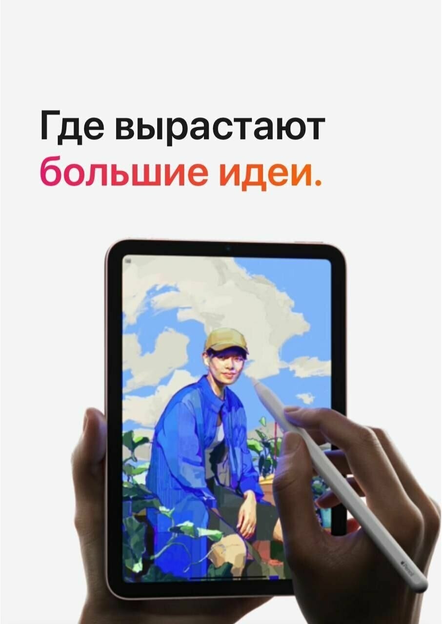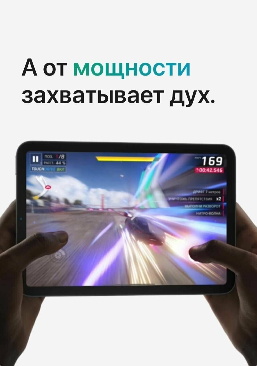 Великолепный дисплей Liquid Retina с диагональю 8,3 дюйма занимает всю переднюю панель. Экран стал больше, но устройство осталось компактным и помещается у вас на ладони. Apple Pencil теперь можно примагнитить к боковой поверхности iPad mini — так он будет всегда под рукой. Новый чип A15 Bionic и ак