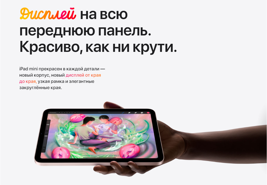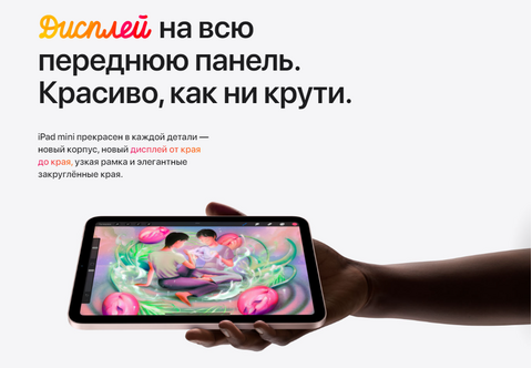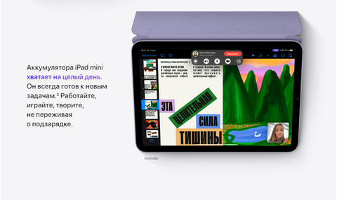 Великолепный дисплей Liquid Retina с диагональю 8,3 дюйма занимает всю переднюю панель. Экран стал больше, но устройство осталось компактным и помещается у...