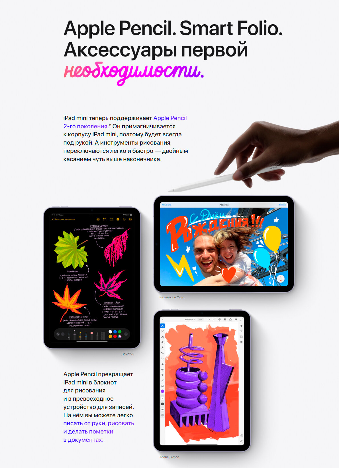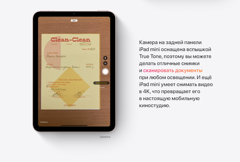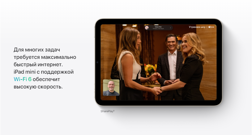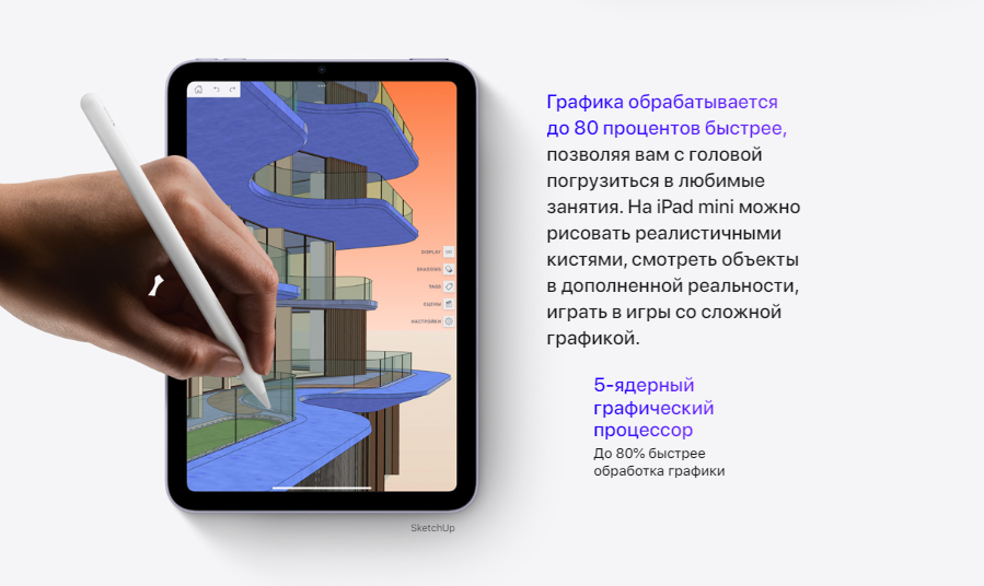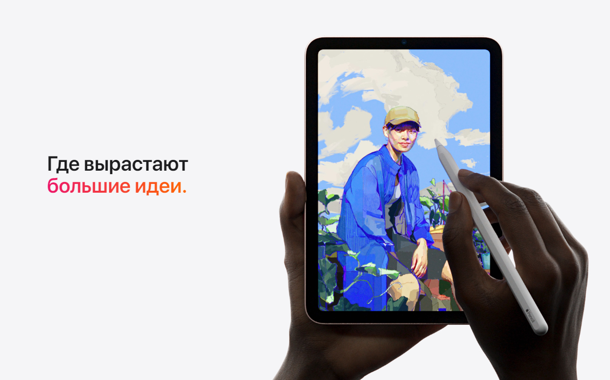 Великолепный дисплей Liquid Retina с диагональю 8,3 дюйма занимает всю переднюю панель. Экран стал больше, но устройство осталось компактным и помещается у вас на ладони. Apple Pencil теперь можно примагнитить к боковой поверхности iPad mini — так он будет всегда под рукой. Новый чип A15 Bionic и ак