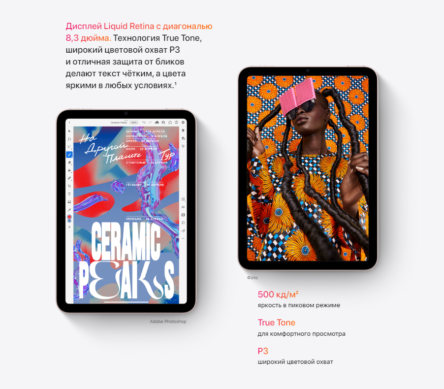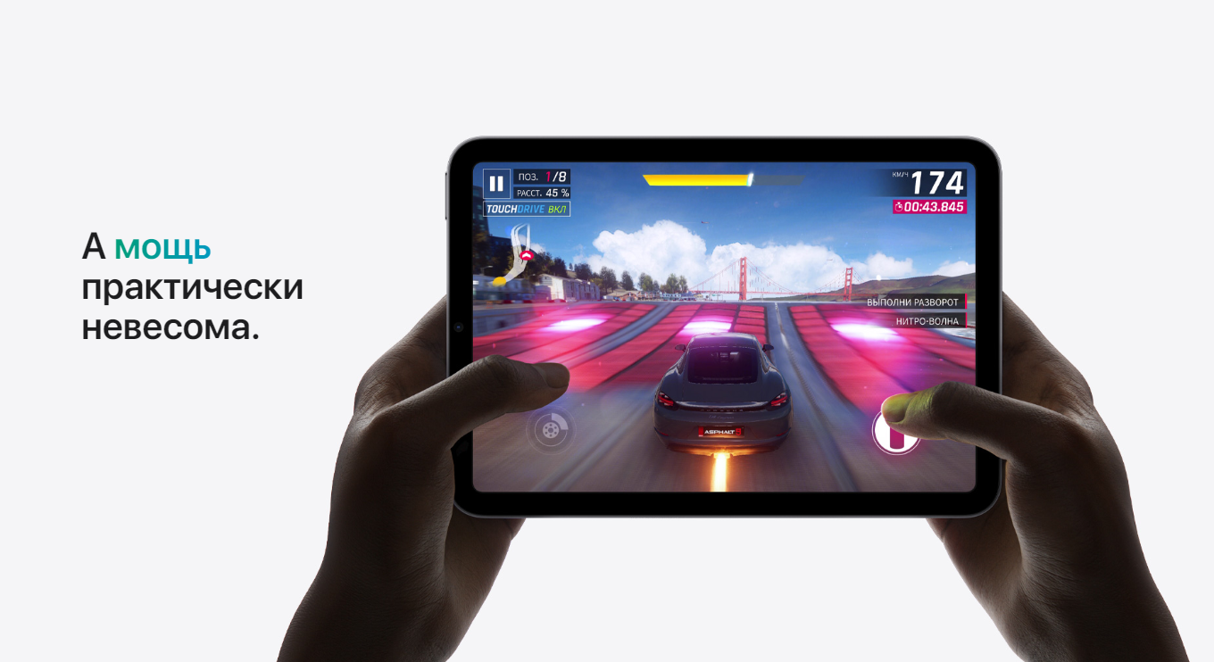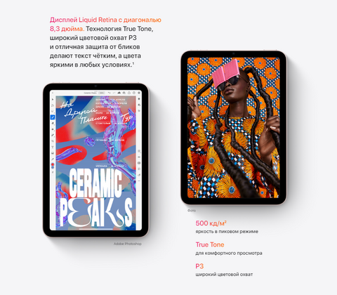 Великолепный дисплей Liquid Retina с диагональю 8,3 дюйма занимает всю переднюю панель. Экран стал больше, но устройство осталось компактным и помещается у...