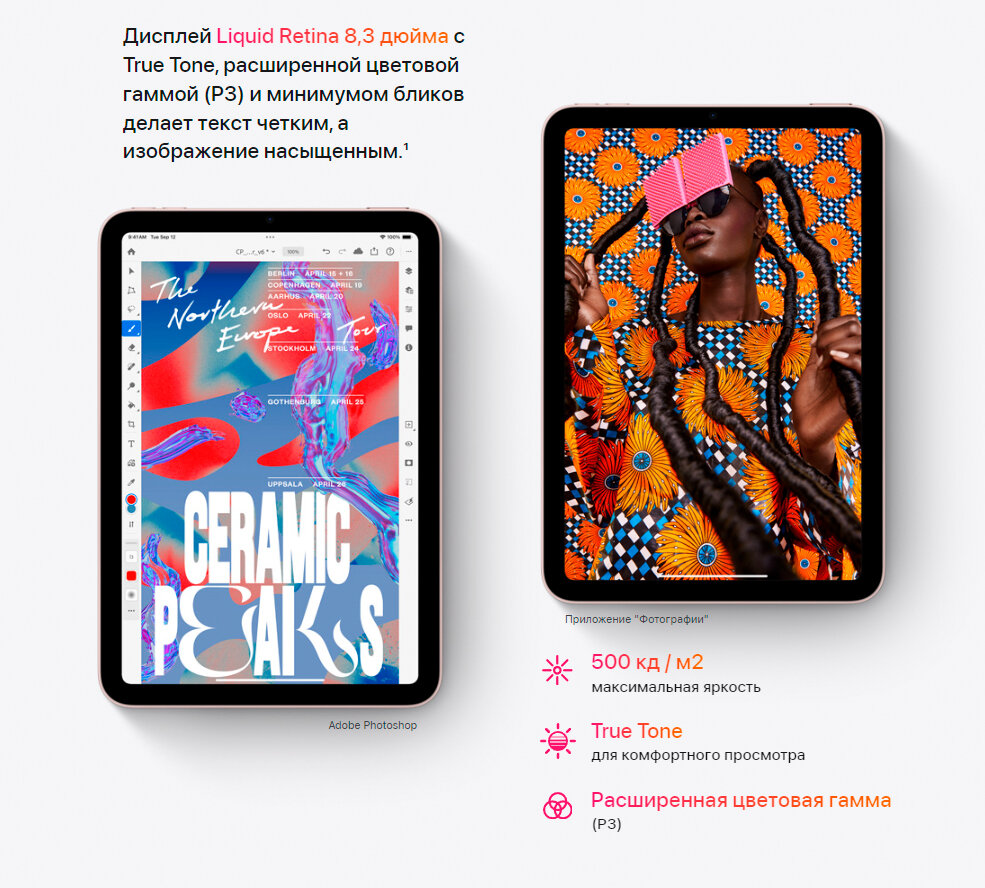 линейка производителя: iPad mini, год начала продаж: 2024, диагональ: 8"-8.9", диагональ экрана: 8.30 ", формат разрешения экрана: Full HD, частота обновления: 60 Гц, количество ядер процессора: 6, тип разъема для зарядки: USB Type-C, количество основных камер: 1, емкость аккумулятора: 5124 мА·ч, ос