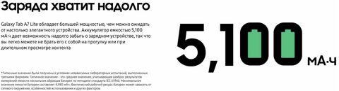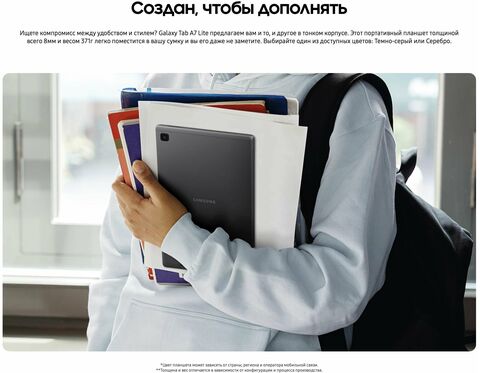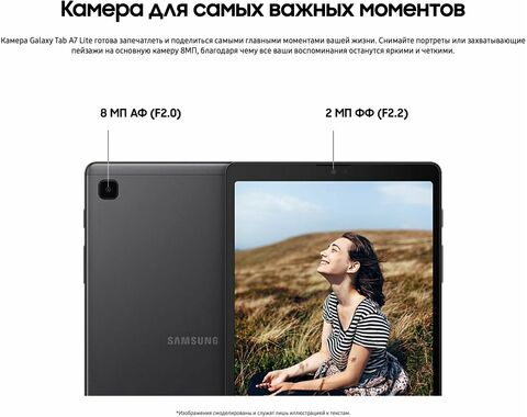 Встречайте Samsung Galaxy Tab A7 Lite. Удобный и легкий, он всегда под рукой. Наслаждайтесь любимыми мобильными играми или смотрите мультфильмы с вашими детьми. Благодаря мощному процессору и емкому аккумулятору, Galaxy Tab A7 Lite гарантирует, что все будет работать быстро и плавно на протяжении мн