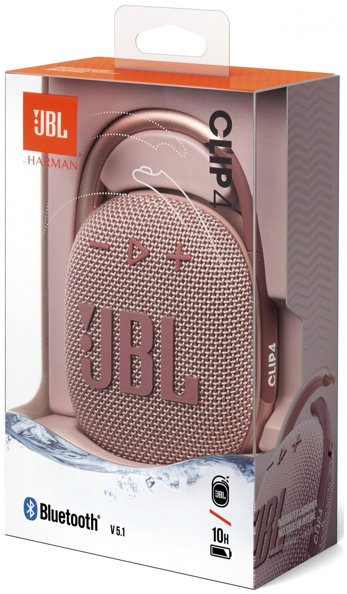 Ультрапортативная колонка JBL CLIP4 с защитой от воды, со встроенным карабином -- твой спутник в каждом приключении Яркая колонка JBL Clip 4 это удивительно насыщенное звучание JBL в компактном корпусе. Колонка уникальной овальной формы легко умещается в руке. Красочная тканевая отделка с выразитель