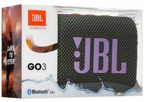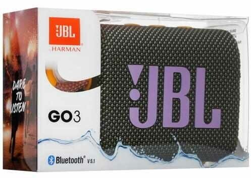 Портативная Bluetooth колонка JBL Go 3 Портативная Bluetooth колонка JBL Go 3 отличается смелым стилем и насыщенным звуком JBL Pro Sound. Благодаря новому броскому остромодному дизайну, красочным тканям и впечатляющим деталям она станет обязательным аксессуаром для вашей следующей поездки. JBL Go 3